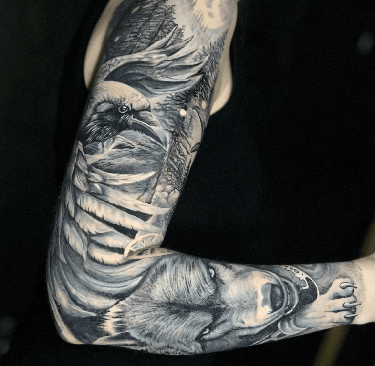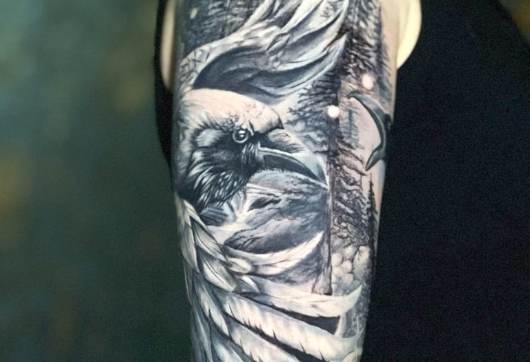 Unika tatueringar inspirerade av nordisk mytologi, realism och färgkonst. Vi skapar personliga motiv som berättar din historia.
