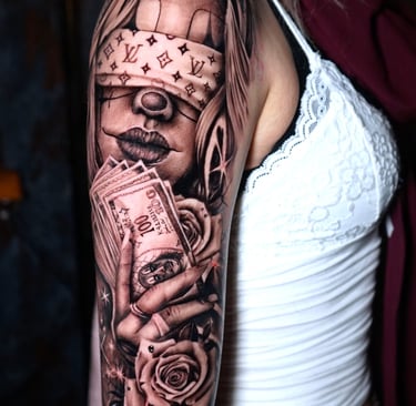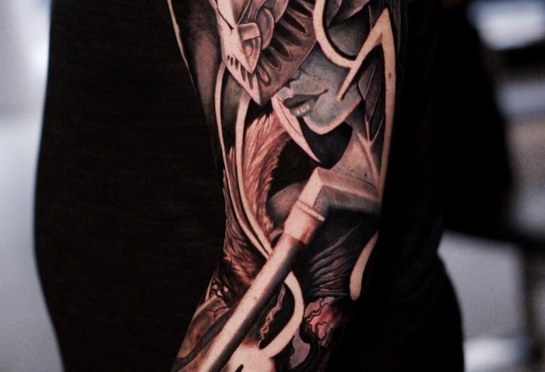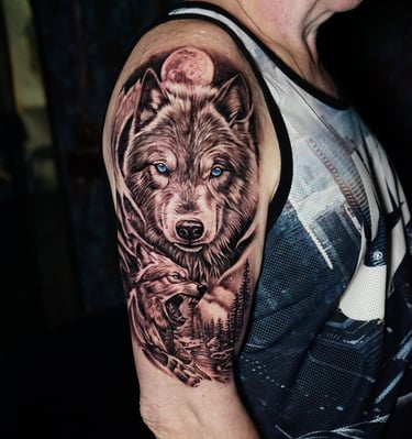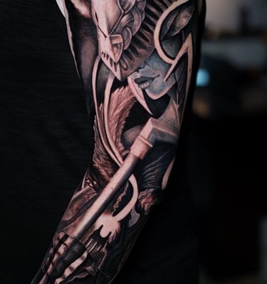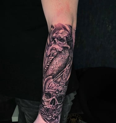Unika tatueringar inspirerade av nordisk mytologi, realism och färgkonst. Vi skapar personliga motiv som berättar din historia.