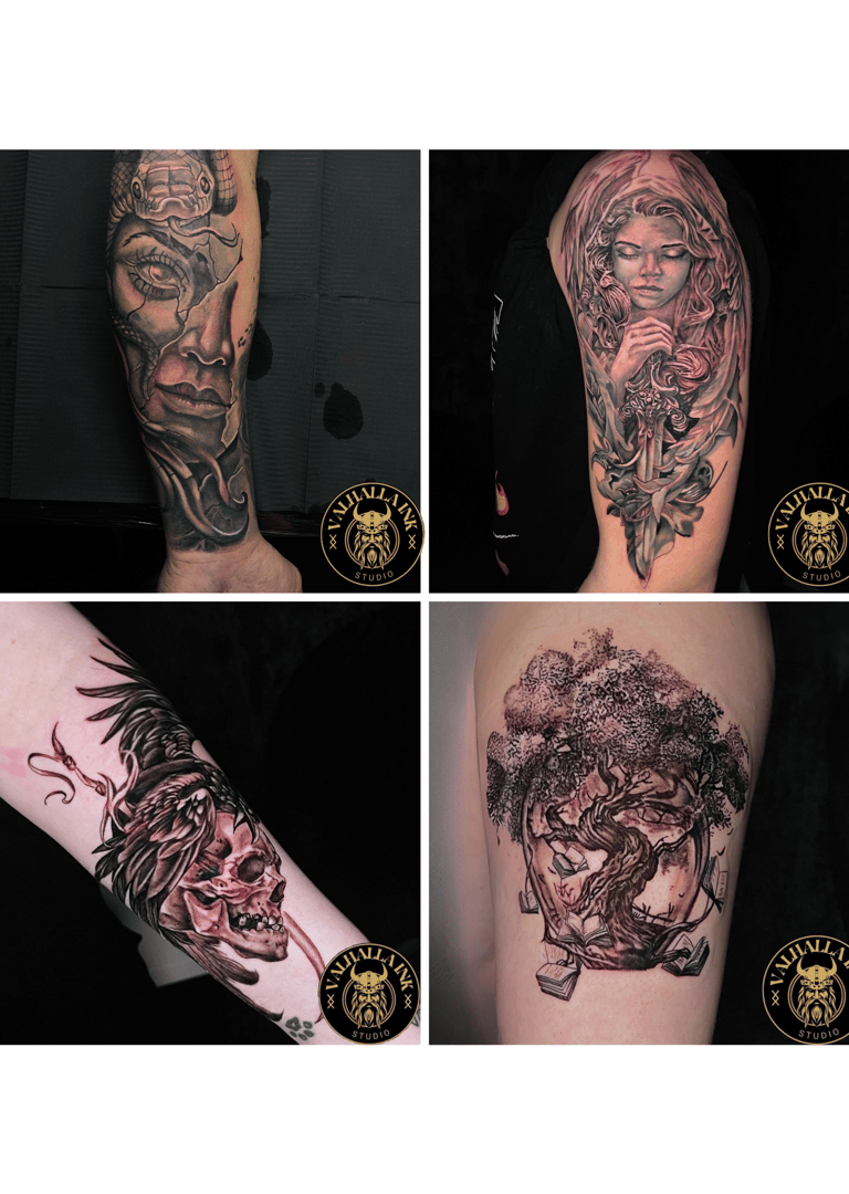 Unique tattoos inspired by Norse mythology, realism, and color art. We create personalized designs that tell your story.